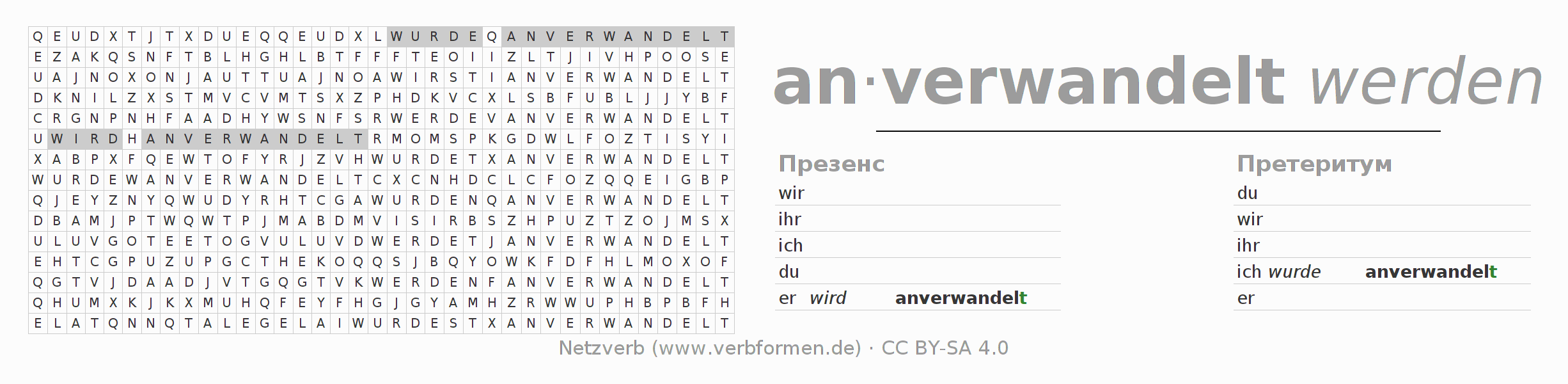 головоломка по спряжению немецких глаголов anverwandeln 〈Пассив с werden〉