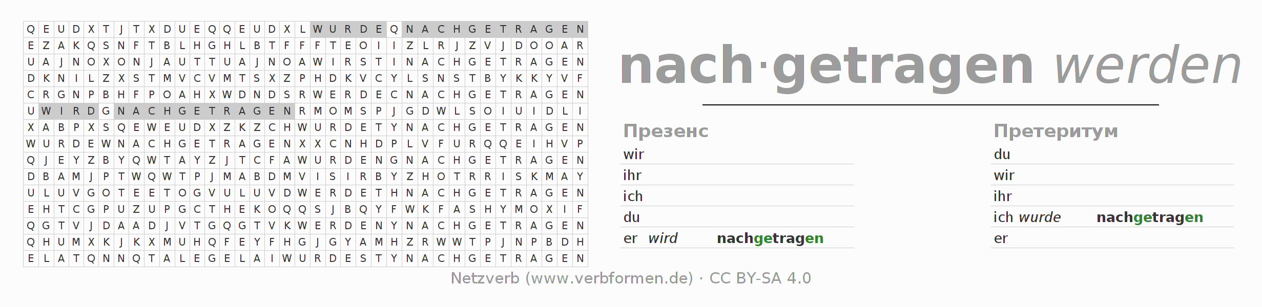 головоломка по спряжению немецких глаголов nachtragen 〈Пассив с werden〉 〈Придаточное предложение〉