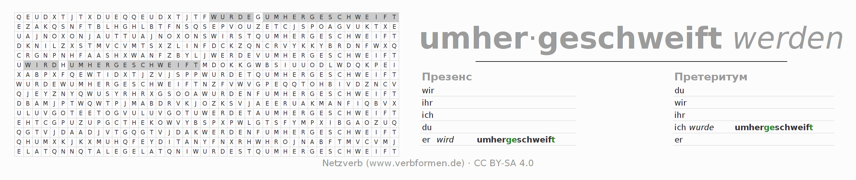 Решение головоломки по спряжению глагола umherschweifen