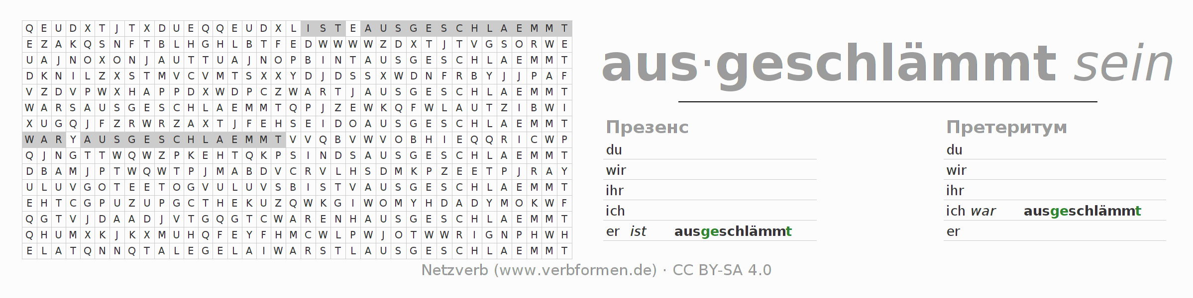 Решение головоломки по спряжению глагола ausschlämmen