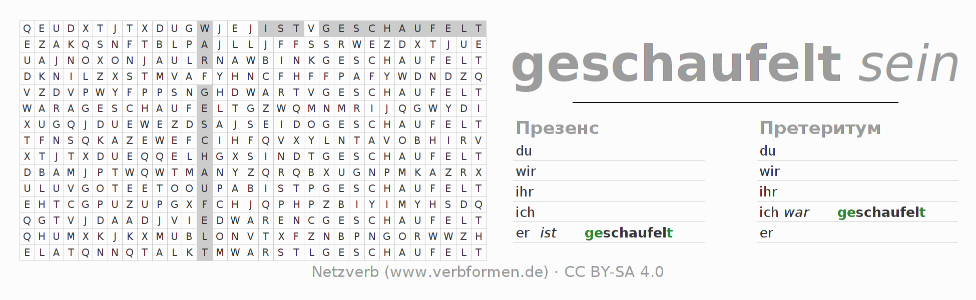Решение головоломки по спряжению глагола schaufeln (ist)