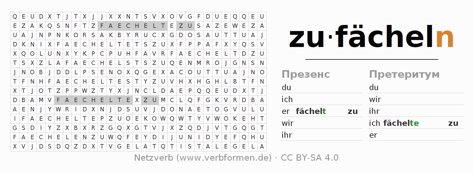 Решение головоломки по спряжению глагола zufächeln