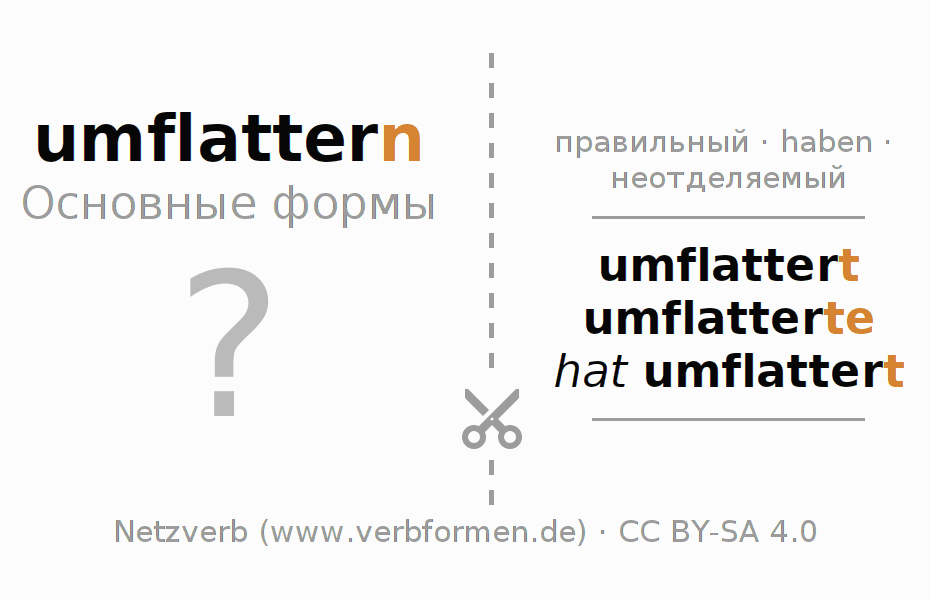 Глагольные таблицы, содержащие все формы глагола umflattern, для наглядности объединены в одну общую таблицу.