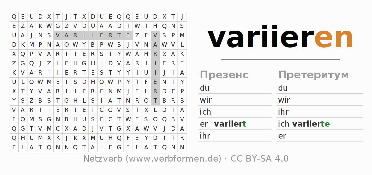 Головоломки по всем формам глагола variieren