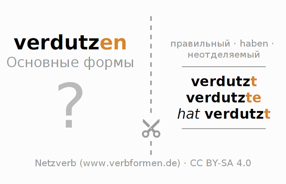 С помощью обучающих карточек можно эффективно и удобно изучать и запоминать глагольные формы verdutzen. Обучающие карточки можно распечатать в формате PDF и вырезать.