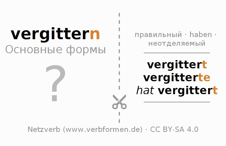 Рабочие материалы служат обучением спряжениям глагола vergittern на уроке и при самообучении. Рабочие материалы могут быть свободно использованы в рамках лицензии CC BY-SA 4.0 в виде Открытых образовательных ресурсов(ООР) например могут быть бесплатно использованы на уроке. Для этого имеется много различных типов рабочих материалов для глагола vergittern в наличии. Это таблицы спряжений, головоломки и игры. Весь учебный материал доступен бесплатно как файлы PDF, в виде изображений или как интерактивная версия браузера. В дополнение к задачам, имеются бесчисленные примеры для vergittern а также помощь в использовании глаголов.