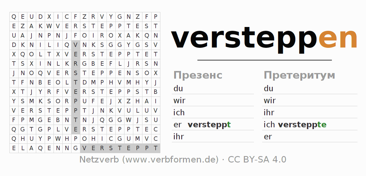 Головоломки по всем формам глагола versteppen
