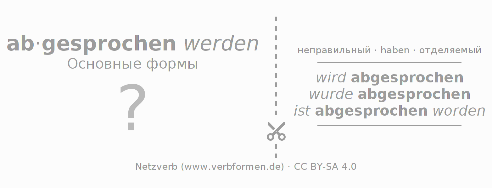 Глагольные таблицы, содержащие все формы глагола absprechen, для наглядности объединены в одну общую таблицу.