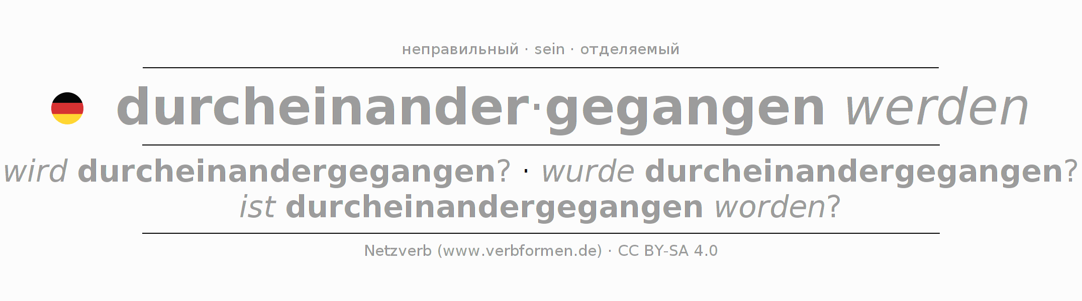 Таблицы спряжения всех форм глагола durcheinandergehen