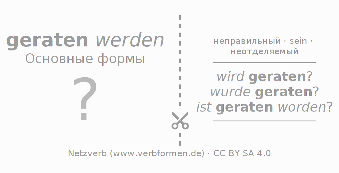 Таблицы спряжения всех форм глагола geraten
