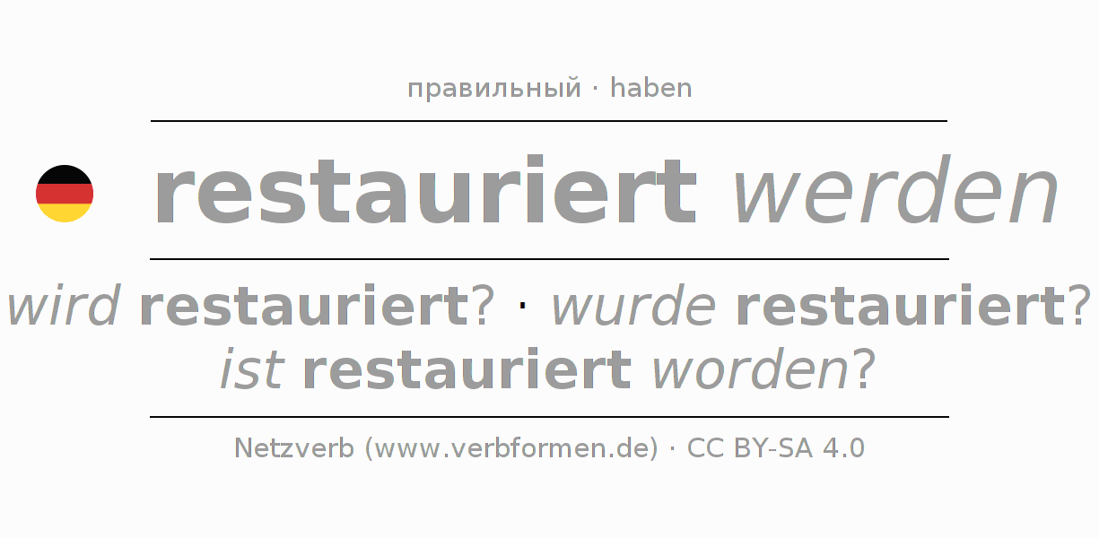 Глагольные таблицы, содержащие все формы глагола restaurieren, для наглядности объединены в одну общую таблицу.