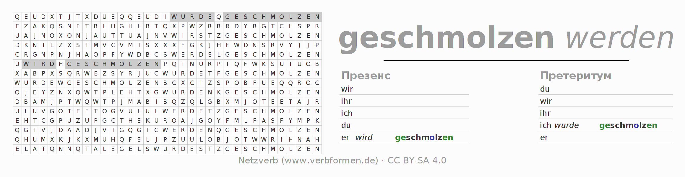 Головоломки по всем формам глагола schmelzen (ist)