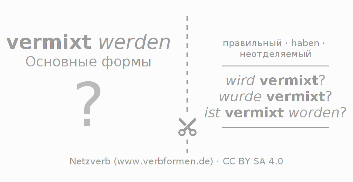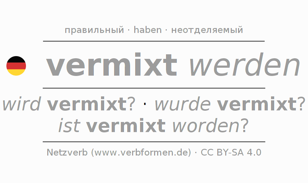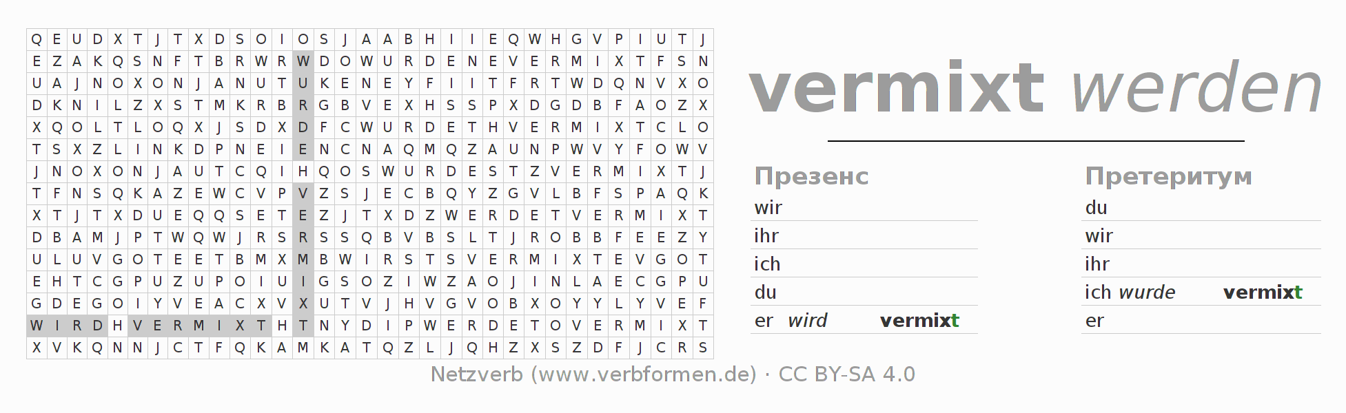 Глагольные таблицы, содержащие все формы глагола vermixen, для наглядности объединены в одну общую таблицу.