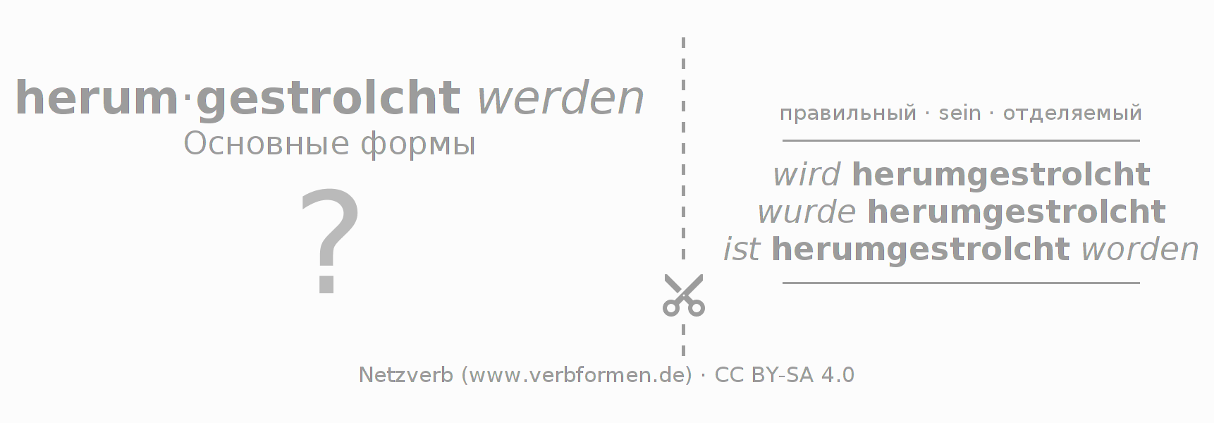 Глагольные таблицы, содержащие все формы глагола herumstrolchen, для наглядности объединены в одну общую таблицу.