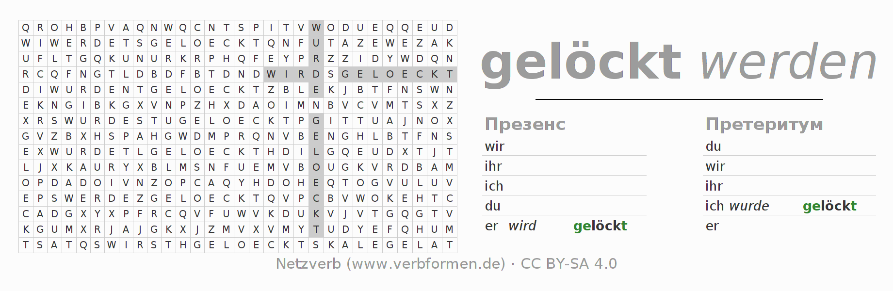 Головоломки по всем формам глагола löcken