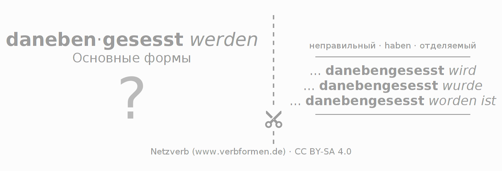 Глагольные таблицы, содержащие все формы глагола danebensitzen, для наглядности объединены в одну общую таблицу.