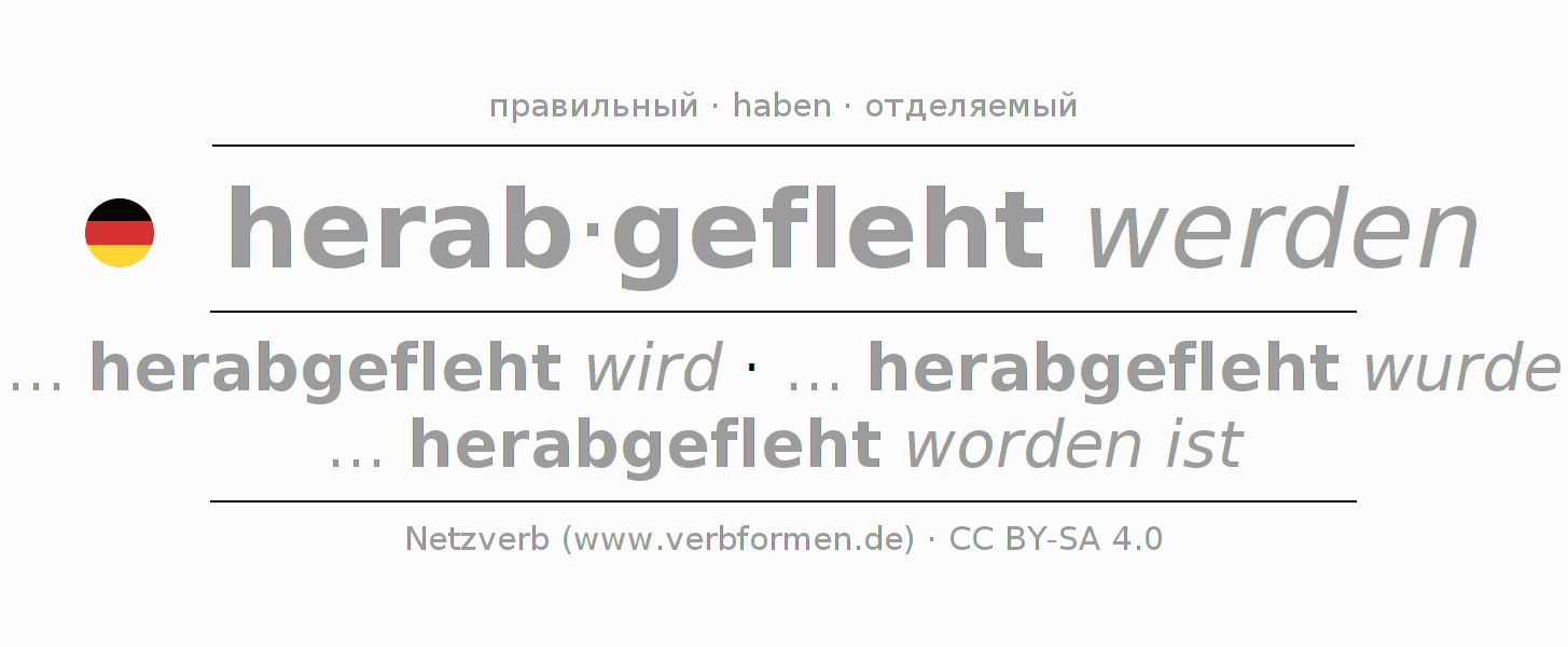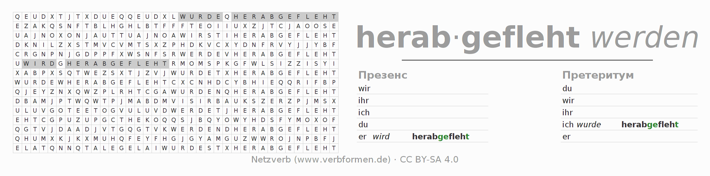 Глагольные таблицы, содержащие все формы глагола herabflehen, для наглядности объединены в одну общую таблицу.
