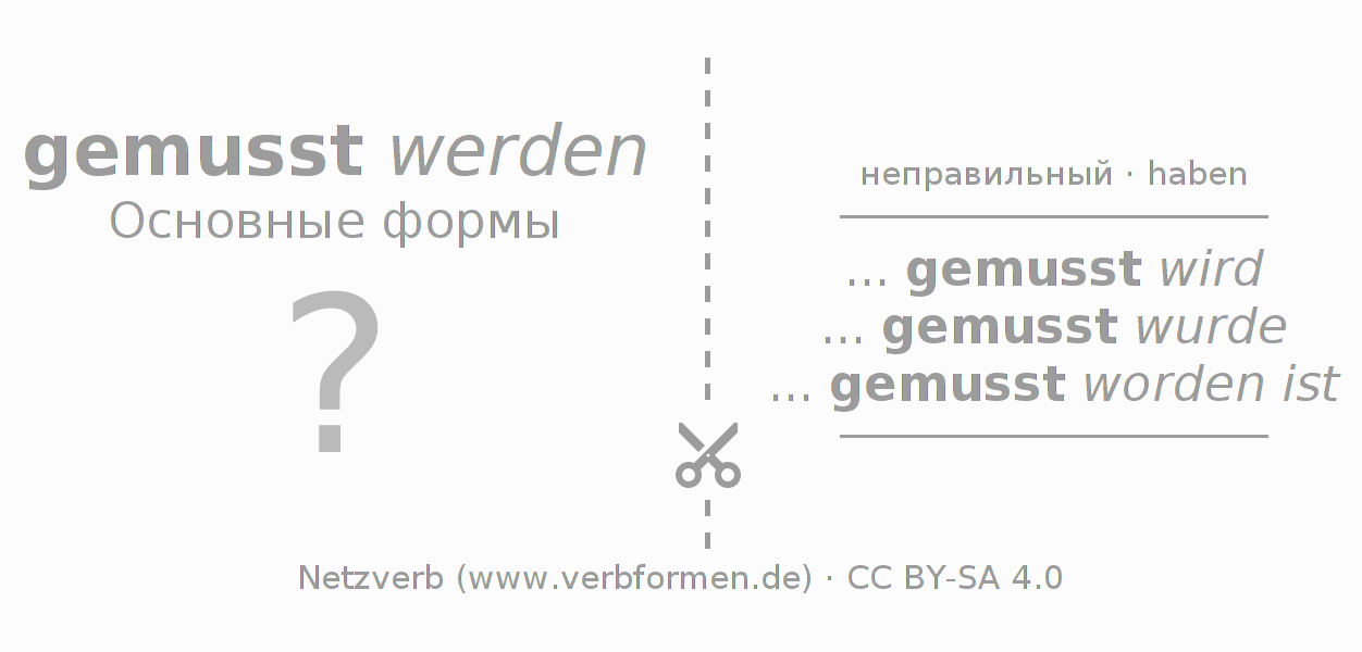 Глагольные таблицы, содержащие все формы глагола müssen, для наглядности объединены в одну общую таблицу.