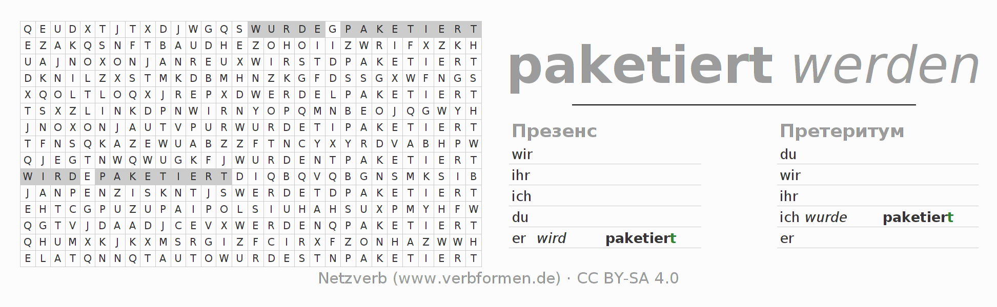 Головоломки по всем формам глагола paketieren