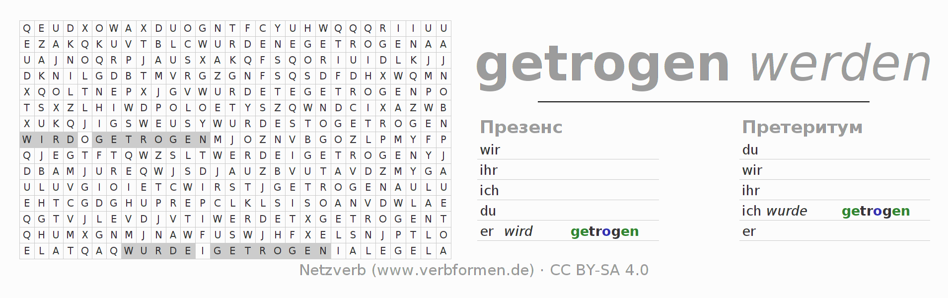 Головоломки по всем формам глагола trügen