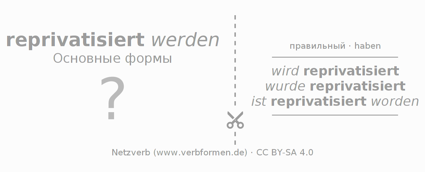 Глагольные таблицы, содержащие все формы глагола reprivatisieren, для наглядности объединены в одну общую таблицу.