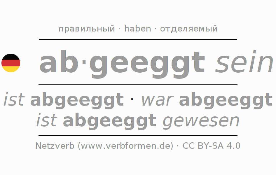 Глагольные таблицы, содержащие все формы глагола abeggen, для наглядности объединены в одну общую таблицу.