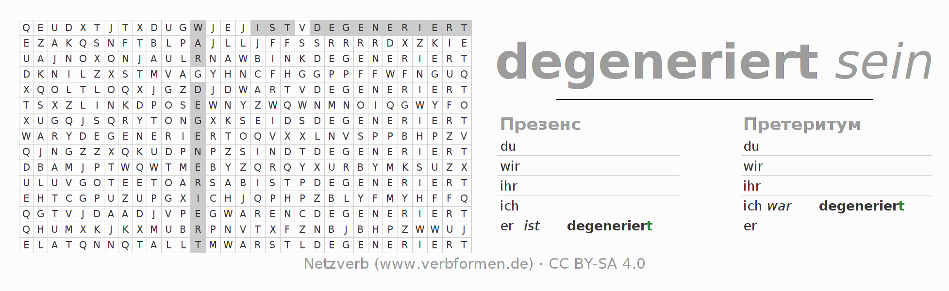 Головоломки по всем формам глагола degenerieren