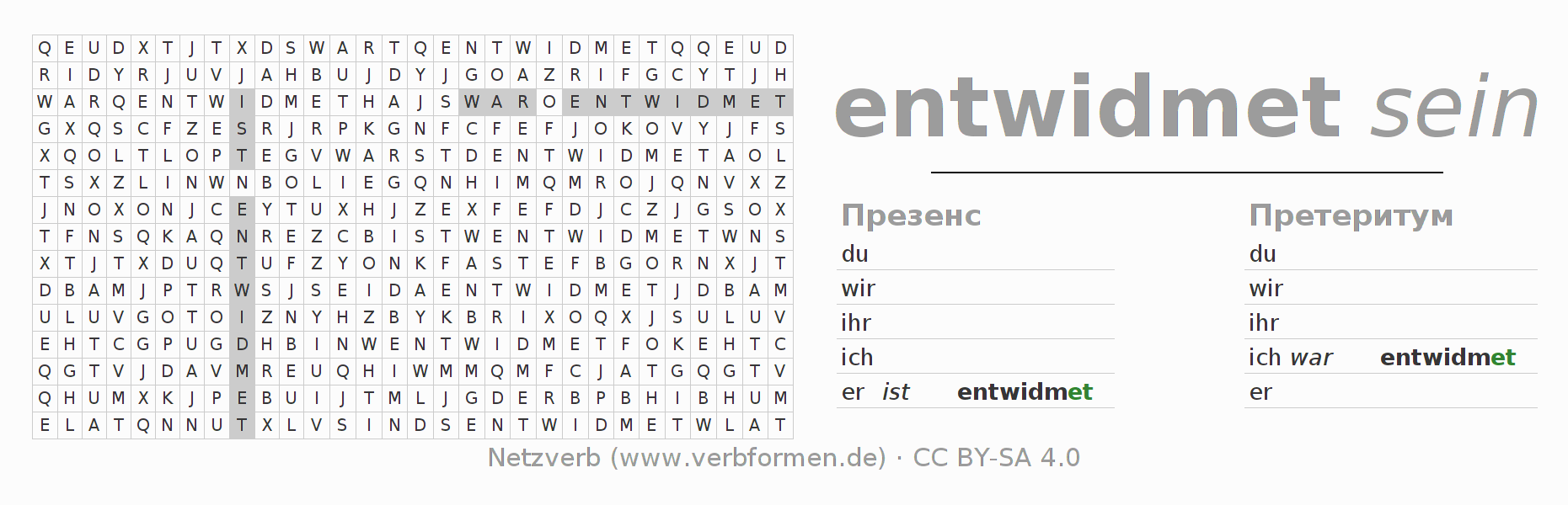 Глагольные таблицы, содержащие все формы глагола entwidmen, для наглядности объединены в одну общую таблицу.
