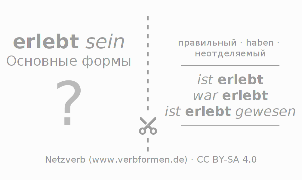 Глагольные таблицы, содержащие все формы глагола erleben, для наглядности объединены в одну общую таблицу.