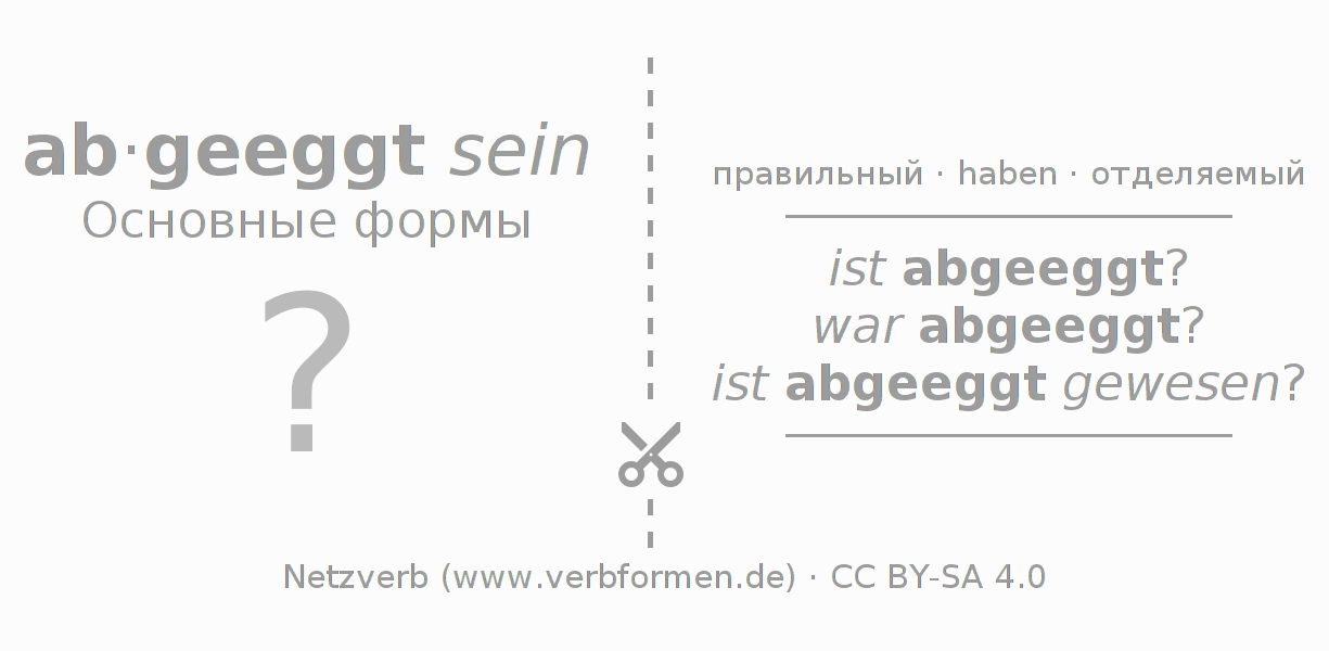 Таблицы спряжения всех форм глагола abeggen