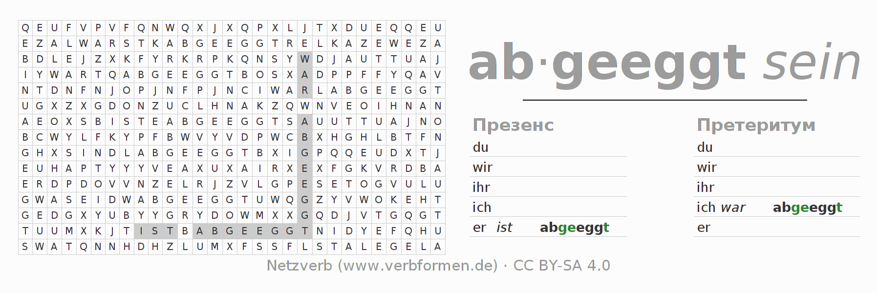 Головоломки по всем формам глагола abeggen