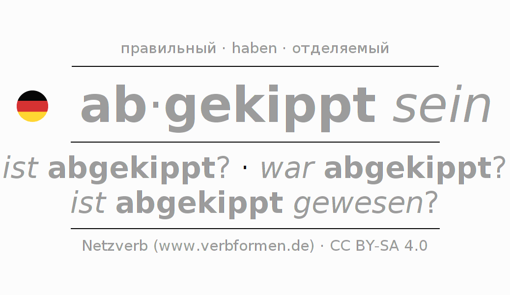 Глагольные таблицы, содержащие все формы глагола abkippen, для наглядности объединены в одну общую таблицу.