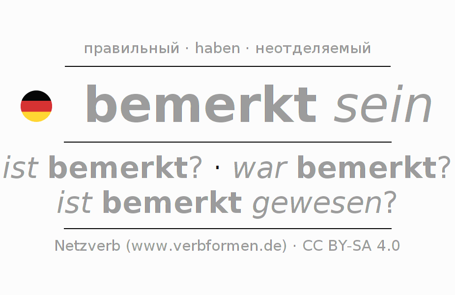 Глагольные таблицы, содержащие все формы глагола bemerken, для наглядности объединены в одну общую таблицу.
