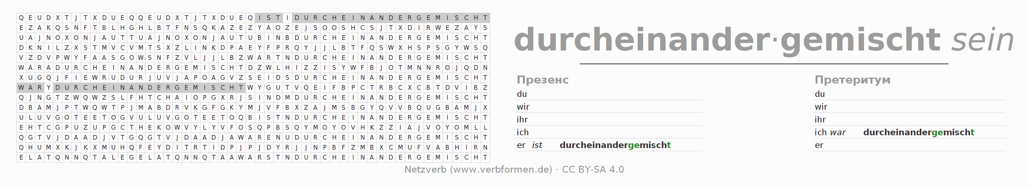Головоломки по всем формам глагола durcheinandermischen