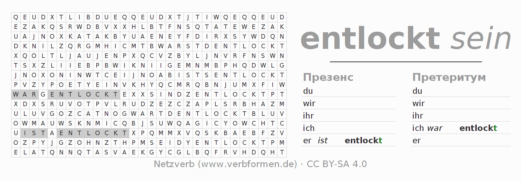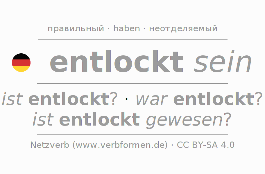 Глагольные таблицы, содержащие все формы глагола entlocken, для наглядности объединены в одну общую таблицу.