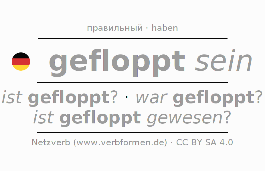 Глагольные таблицы, содержащие все формы глагола floppen, для наглядности объединены в одну общую таблицу.