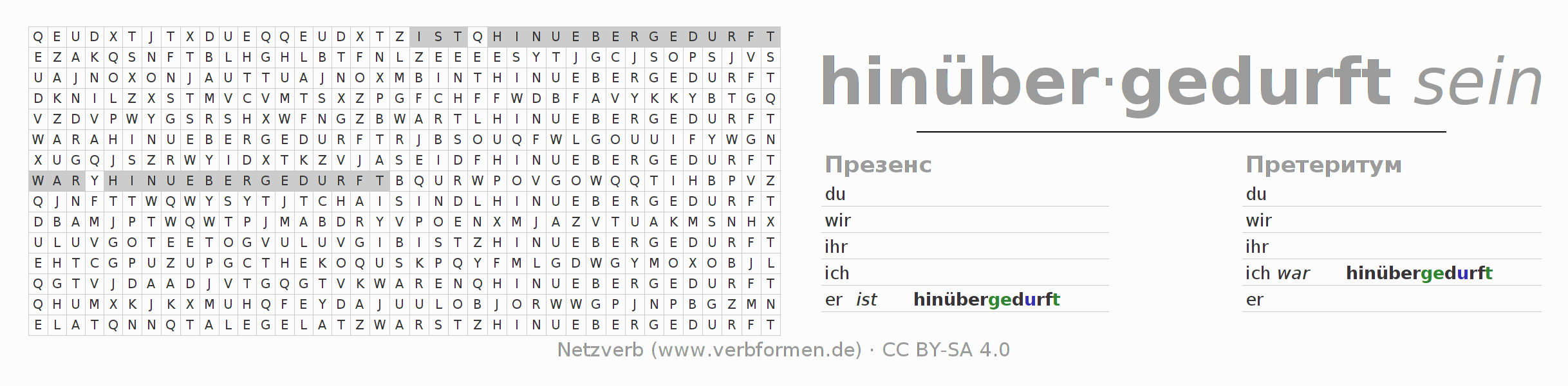 Головоломки по всем формам глагола hinüberdürfen