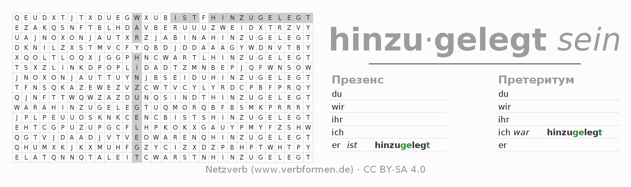 Головоломки по всем формам глагола hinzulegen