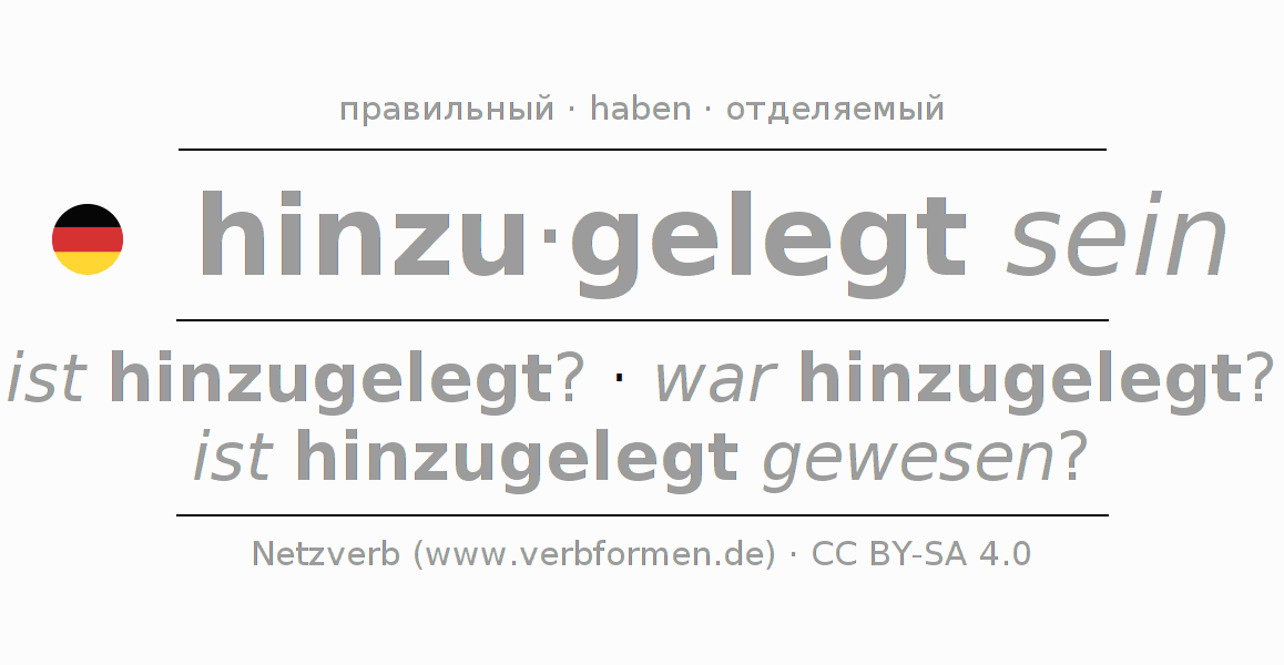 Таблицы спряжения всех форм глагола hinzulegen