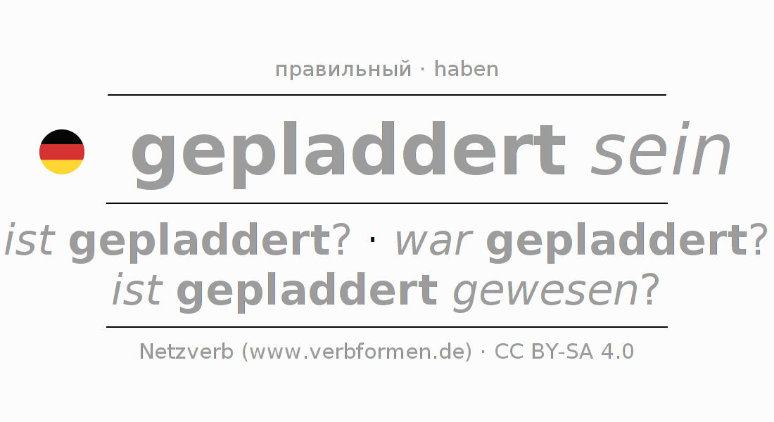 Глагольные таблицы, содержащие все формы глагола pladdern, для наглядности объединены в одну общую таблицу.