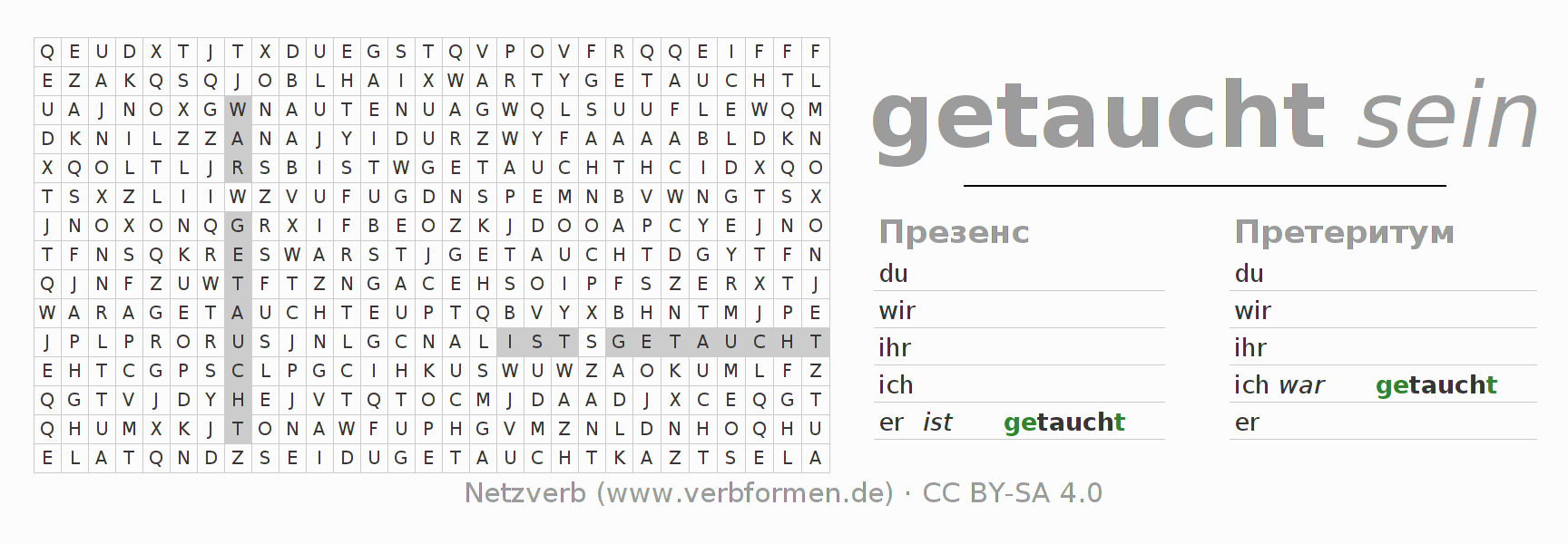 Головоломки по всем формам глагола tauchen (hat)