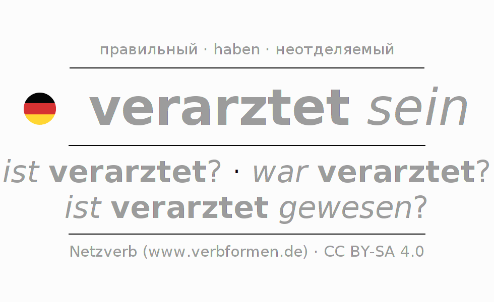 Глагольные таблицы, содержащие все формы глагола verarzten, для наглядности объединены в одну общую таблицу.