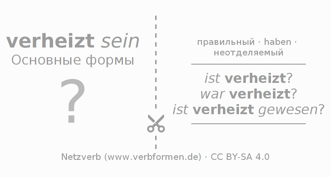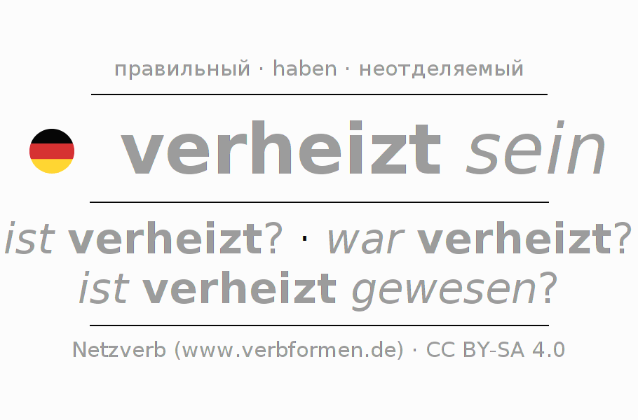 Глагольные таблицы, содержащие все формы глагола verheizen, для наглядности объединены в одну общую таблицу.