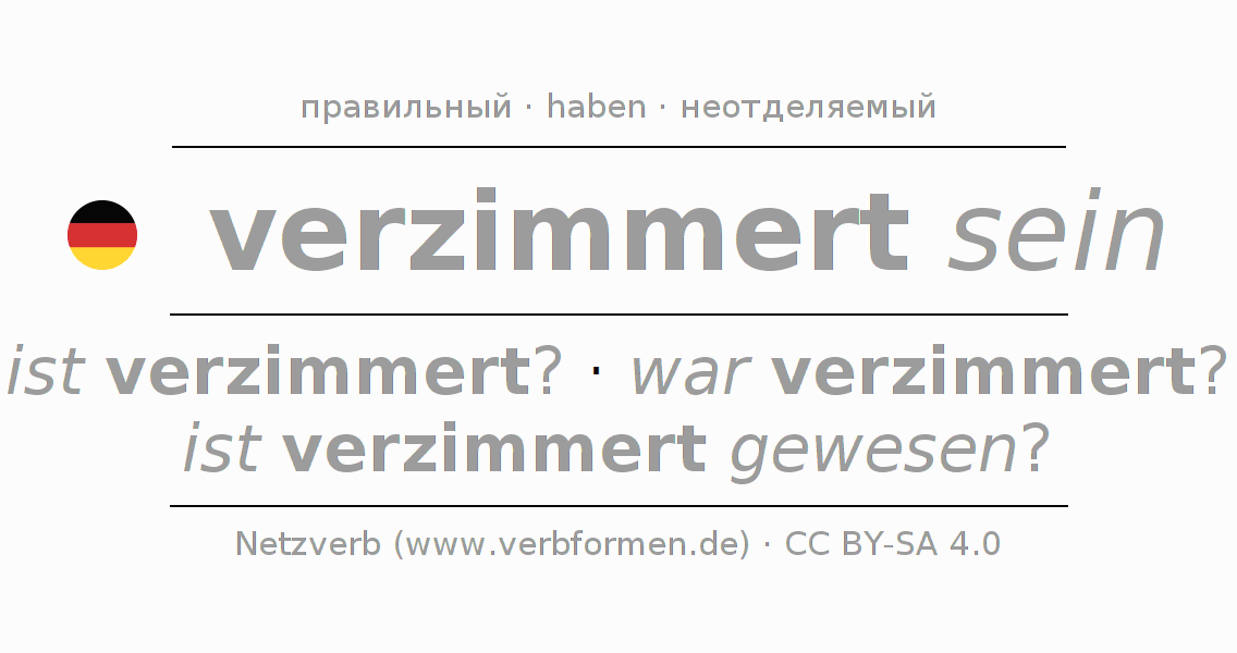 Глагольные таблицы, содержащие все формы глагола verzimmern, для наглядности объединены в одну общую таблицу.