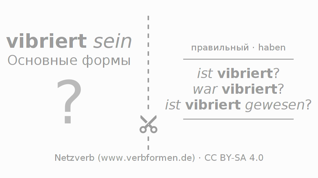 Глагольные таблицы, содержащие все формы глагола vibrieren, для наглядности объединены в одну общую таблицу.