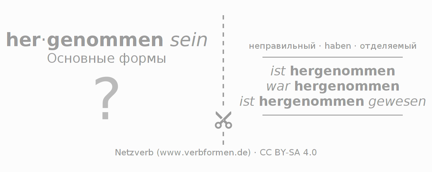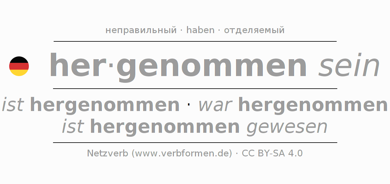 Глагольные таблицы, содержащие все формы глагола hernehmen, для наглядности объединены в одну общую таблицу.