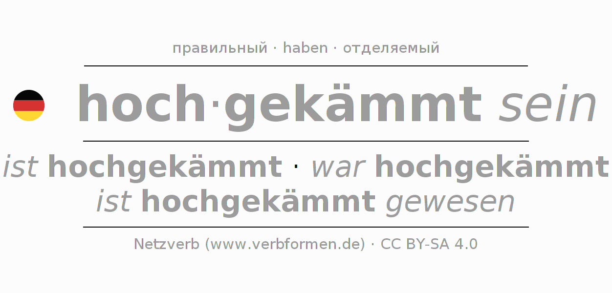 Глагольные таблицы, содержащие все формы глагола hochkämmen, для наглядности объединены в одну общую таблицу.