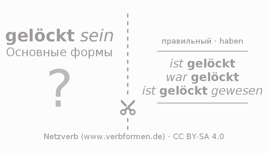 Глагольные таблицы, содержащие все формы глагола löcken, для наглядности объединены в одну общую таблицу.