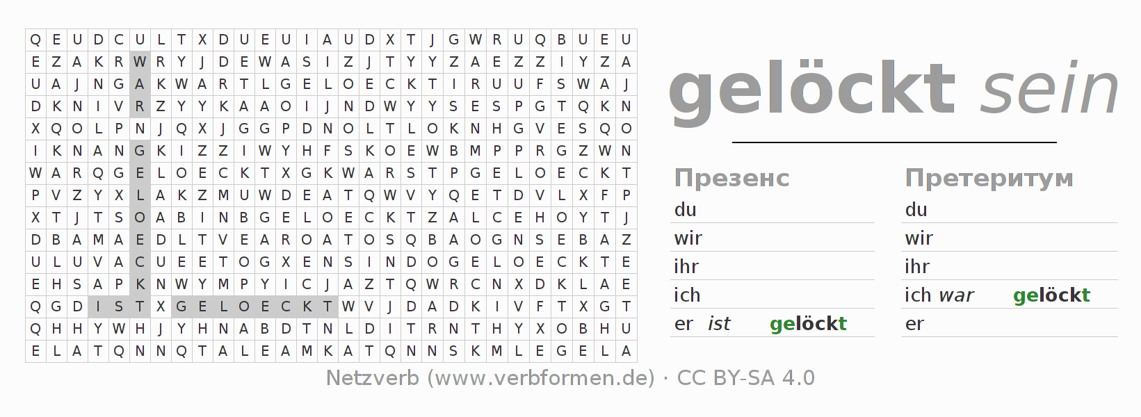 С помощью этих головоломок по поиску слов Вы можете подходящим для Вас способом изучать спряжение немецкого глагола löcken.