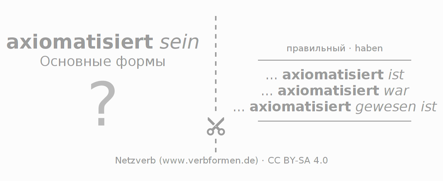 Глагольные таблицы, содержащие все формы глагола axiomatisieren, для наглядности объединены в одну общую таблицу.
